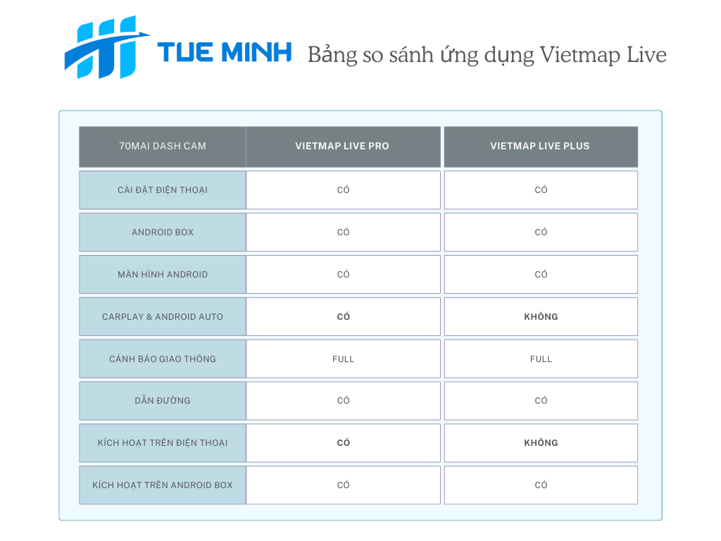 » Một số camera hành trình Vietmap không hỗ trợ cảnh báo trực tiếp trên thiết bị, nhưng vẫn sử dụng Vietmap Live đầy đủ chức năng trên điện thoại